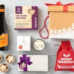 Presented in a Kraft Gift Box Snowy Christmas Scene, Red Satin Box & Red Cord Handles