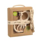 Sophie the Giraffe Pure Teething Ring – . Made from the same natural rubber and food grade paints as the original Sophie la Giraffe. Great for little hands to hold and is ideal for soothing painful gums. Features a variety of textures to relieve baby at different stages of teething.