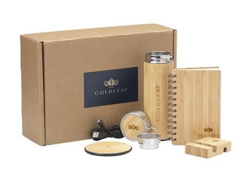 Make this set even more special by printing a logo on each individual product and/or a sticker on the box. These products are delivered as a set in a durable kraft gift box.