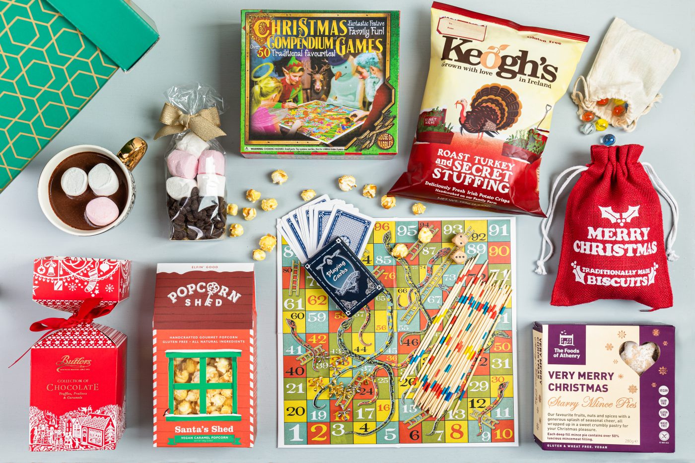 Send the gift of a festive fun night in for all the family! Kids and Parents will enjoy the goodies and games on offer in this beautifully presented hamper.