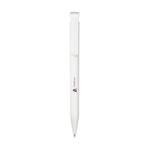 Blue ink ballpoint pen from the Senator® brand. Made from recycled material. This pen has a sleek, matte finish and a generously sized clip/push button. The barrel is printed with a small ‘recycled material’ logo, next to the clip. Due to the recycled material used, slight irregularities in the surface of the pen may occur.